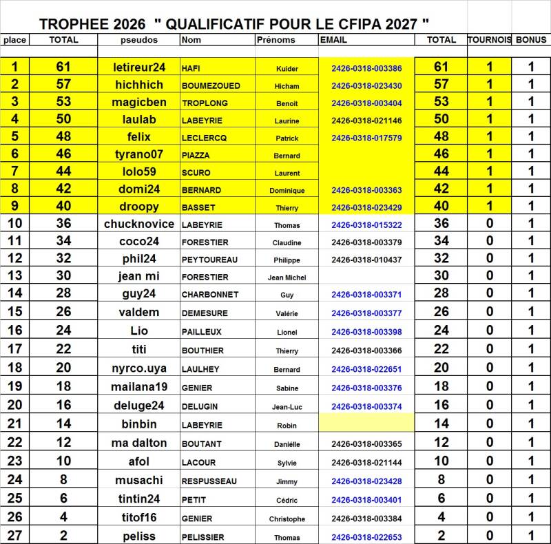 Trophée 2026 - Qualificatif pour le CFIPA 2027